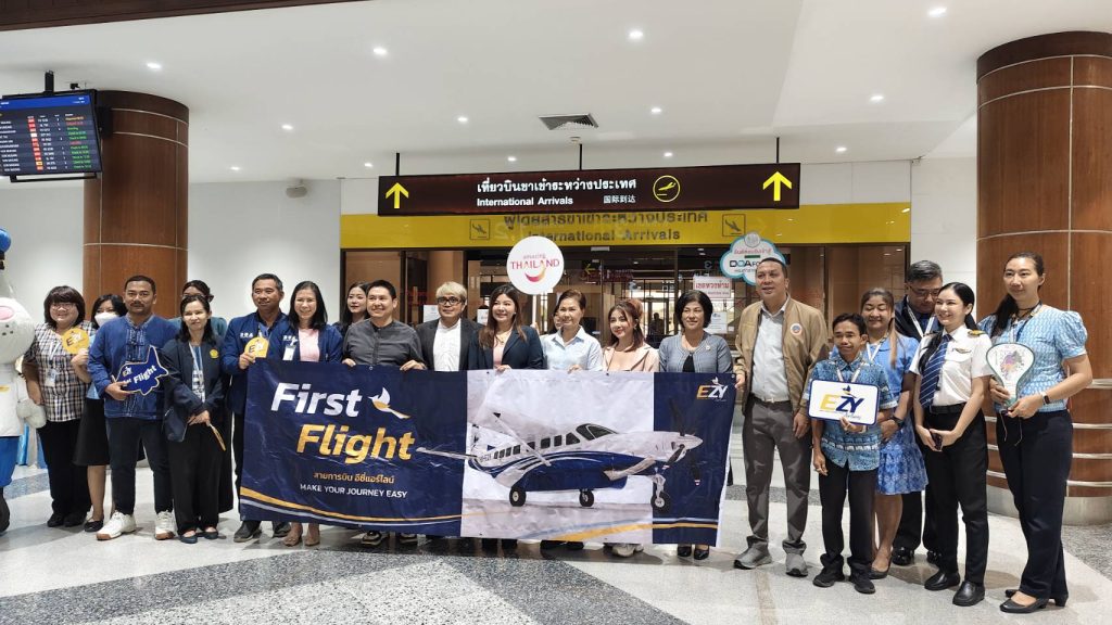 เมื่อวันที่ 17 ตุลาคม 2568 คุณจิราลักษณ์ ผดุงภักดีวงศ์ ประธานภาค (President Chapter) สมาคมไทยบริการท่องเที่ยว (ทีทีเอเอ : TTAA) ภาคใต้ตอนล่าง (Lower Southern Chapter) เป็นผู้นำนักท่องเที่ยว จำนวน 5 คน เดินทางมากับเที่ยวบินปฐมฤกษ์ของสายการบินอีซี่ แอร์ไลน์ส (Ezy Airlines) เที่ยวบิน EZT2111 จากท่าอากาศยานหาดใหญ่ ถึงท่าอากาศยานสุราษฎร์ธานี เวลา 09.20 น.