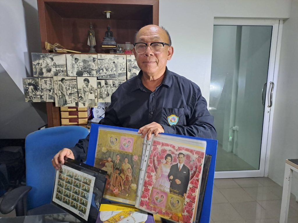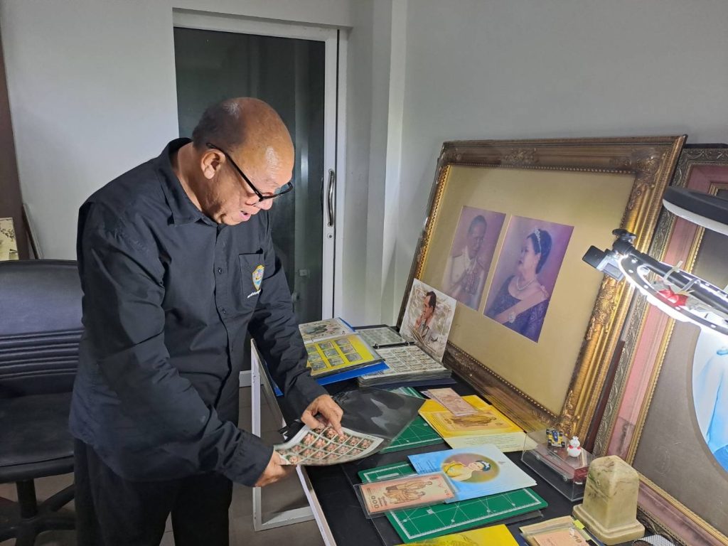 อดีตอาจารย์คณะมนุษยศาสตร์และสังคมศาสตร์ มหาวิทยาลัยราชภัฏสุราษฎร์ธานี นักสะสมแสตมป์พระบรมฉายาลักษณ์ สมเด็จพระนางเจ้าสิริกิติ์ พระบรมราชินีนาถ พระบรมราชชนนีพันปีหลวงมานานหลายสิบปี นำภาพที่เก็บสะสมที่หาดูยากมาดูด้วยความซาบซึ้งในพระมหากรุณาธิคุณที่มีต่อปวงชนชาวไทย