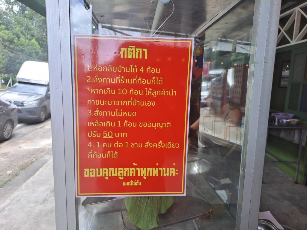 โดยมีกติกา คือหากมารับประทานที่ร้าน บะหมี่กี่ก้อนก็ได้ไม่อั้น ถ้าลูกค้าทานไม่หมดเกิน 2 ก้อน จะต้องโดนปรับ 50 บาท โดยตั้งแต่เปิดขายมาได้กว่า 2 สัปดาห์ มีลูกค้าทำสถิติสูงสุด 15 ก้อนที่รับประทานที่ร้าน สั่งห่อกลับบ้านได้สูงสุด 4 ก้อน/1ห่อ ถ้าต้องการมากว่า10 ก้อนให้ลูกค้านำภาชนะมาเอง