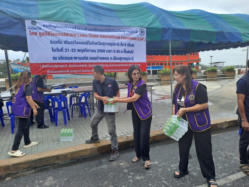 สโมสรไลออนส์ศรีวิชัยพุนพิน สโมสรไลออนส์สุธานี สโมสรไลออนส์เมืองคนดี สุราษฎร์ธานี สโมสรไลออนส์เมืองร้อยเกาะ สุราษฎร์ธานี และสโมสรไลออนส์ (อินฟินิตี้) รวมใจเปิดศูนยฺรับบริจาคสิ่งของเพื่อนำไปช่วยเหลืออุทกภัยในจังหวัดสุราษฎร์ธานีที่ได้รับผลกระทบหลายพันครัวเรือน