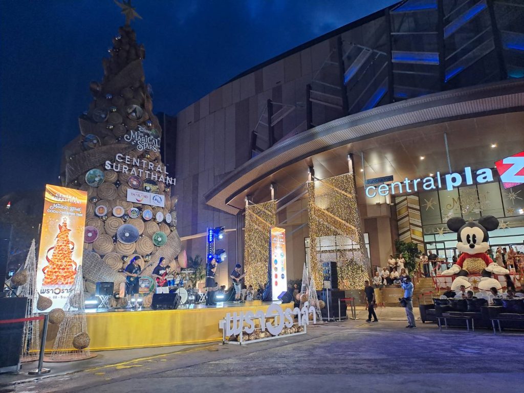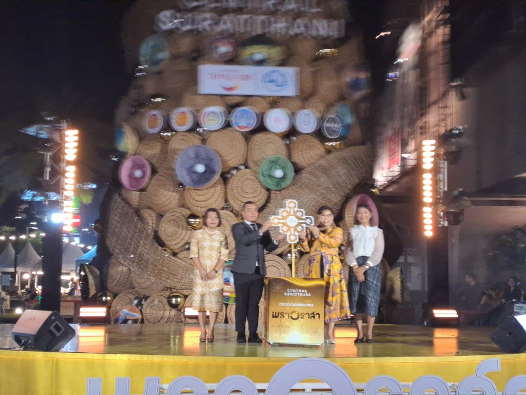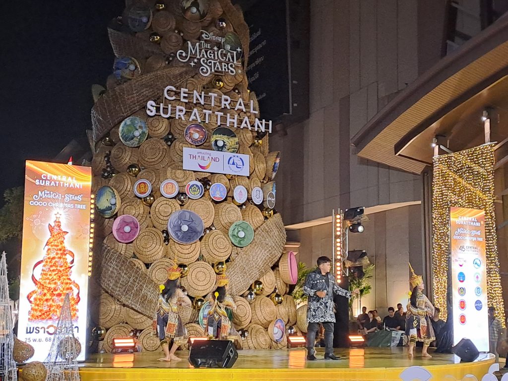งานประดับแสง — แรงร่วมมือจากท้องถิ่นการออกแบบแสงสว่างภายในงานได้รับความร่วมมือจาก กลุ่มทิวธารา และ วิทยาลัยสารพัดช่างสุราษฎร์ธานี ที่ร่วมผลิตงานฉลุจากกะลามะพร้าว จัดทำเป็น “ช่อโคมไฟกะลามะพร้าว” ให้แสงอบอุ่น สร้างบรรยากาศเฉลิมฉลองช่วงเทศกาลคริสต์มาสได้อย่างงดงามและมีเอกลักษณ์