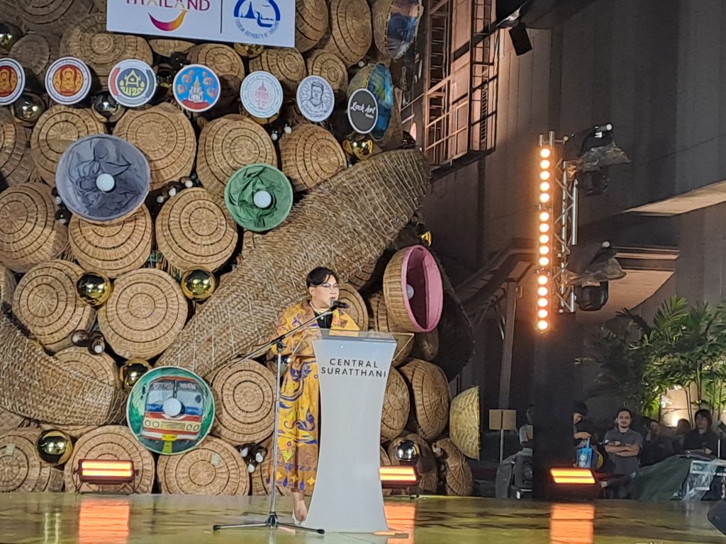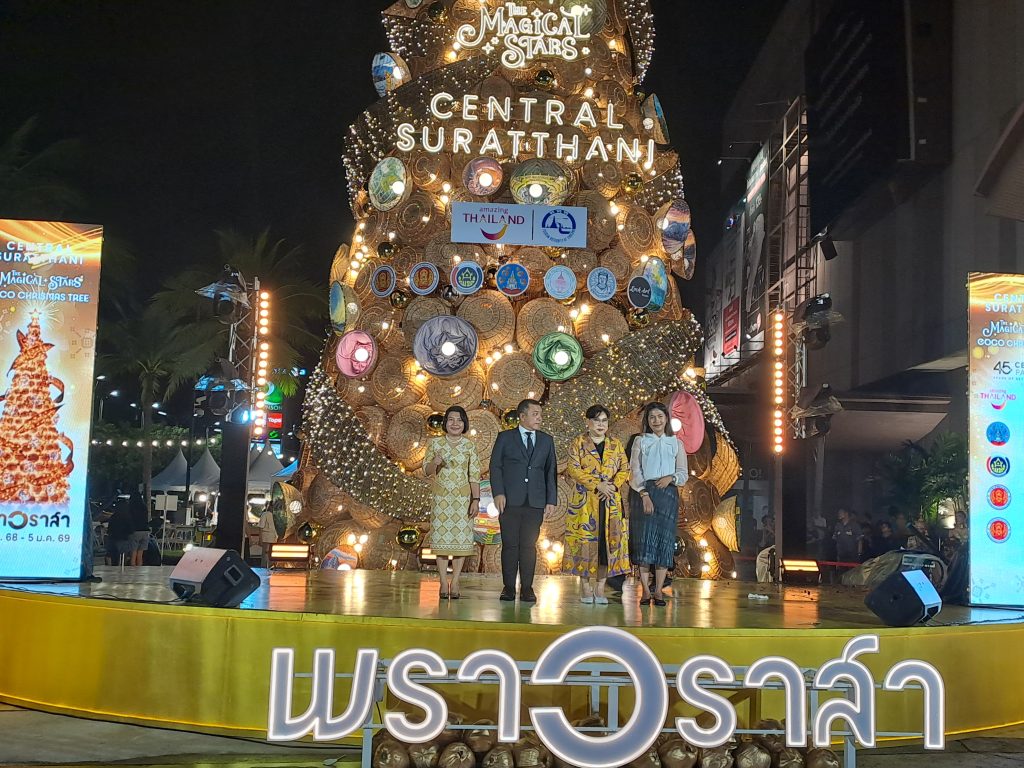 “ต้นคริสต์มาสอัตลักษณ์ท้องถิ่น” ที่สะท้อนความภาคภูมิใจของชาวสุราษฎร์ธานี และเพื่อเทิดพระเกียรติ สมเด็จพระนางเจ้าสิริกิติ์ พระบรมราชินีนาถ พระบรมราชชนนีพันปีหลวง ผู้ทรงมีพระมหากรุณาธิคุณยิ่งต่อการอนุรักษ์ศิลปหัตถกรรมไทย การส่งเสริมอาชีพ และคุณภาพชีวิตของประชาชนอย่างยั่งยืน
