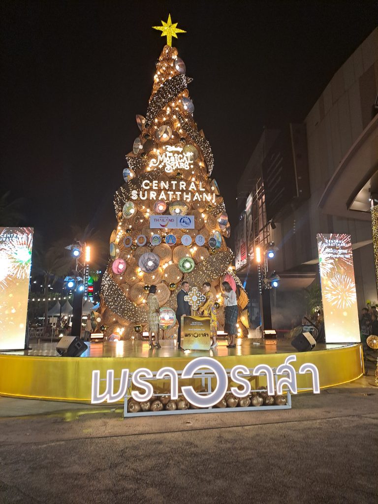 วันที่ 6 ธันวาคม 2568 เวลา 19.00 น. บริเวณลานกิจกรรมหน้าศูนย์การค้าเซ็นทรัล สุราษฎร์ธานี พิธีปิดไฟต้นคริสต์มาส “พราวราสา” โดยมี นายจุมพฎ วรรณฉัตรสิริ ผู้ว่าราชการจังหวัดสุราษฎร์ธานีเป็นประธาน