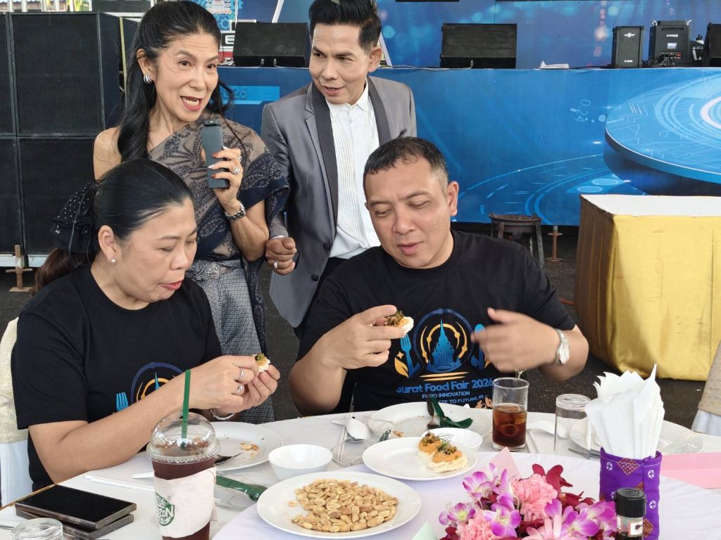 นายจุมพฎ วรรณฉัตรสิริ ผู้ว่าราชการจังหวัดสุราษฎร์ธานี กล่าวเชิญชวนให้ชาวสุราษฎร์ธานีมาร่วมกันเที่ยวงานสุราษฎร์ฟู้ดแฟร์ 2026” ภายใต้แนวคิด “Food Innovation: From Local Taste to Future Plate” ระหว่างวันที่ 13-21 มีนาคม 2569 อยากให้ท่านจำคำ 5 คำ มา “ชิม” อาหารภายในงาน ชิมเสร็จแล้ว “ซ็อป” กลับบ้าน ร่วม “เช็คอิน”ภายในงาน แล้ว “แชร์” ให้เพื่อนรู้แล้วก็ “ชวน”เขามาเที่ยวงานก็จะทำให้งานสุราษฎร์ฟู้ดแฟร์ปีนี้เป็นปีที่ยิ่งใหญ่ และประสบความสำเร็จในการผลักดันให้จังหวัดสุราษฎร์ธานีเป็นศูนย์กลางด้านอาหารและ นวัตกรรมอาหารของภาคใต้