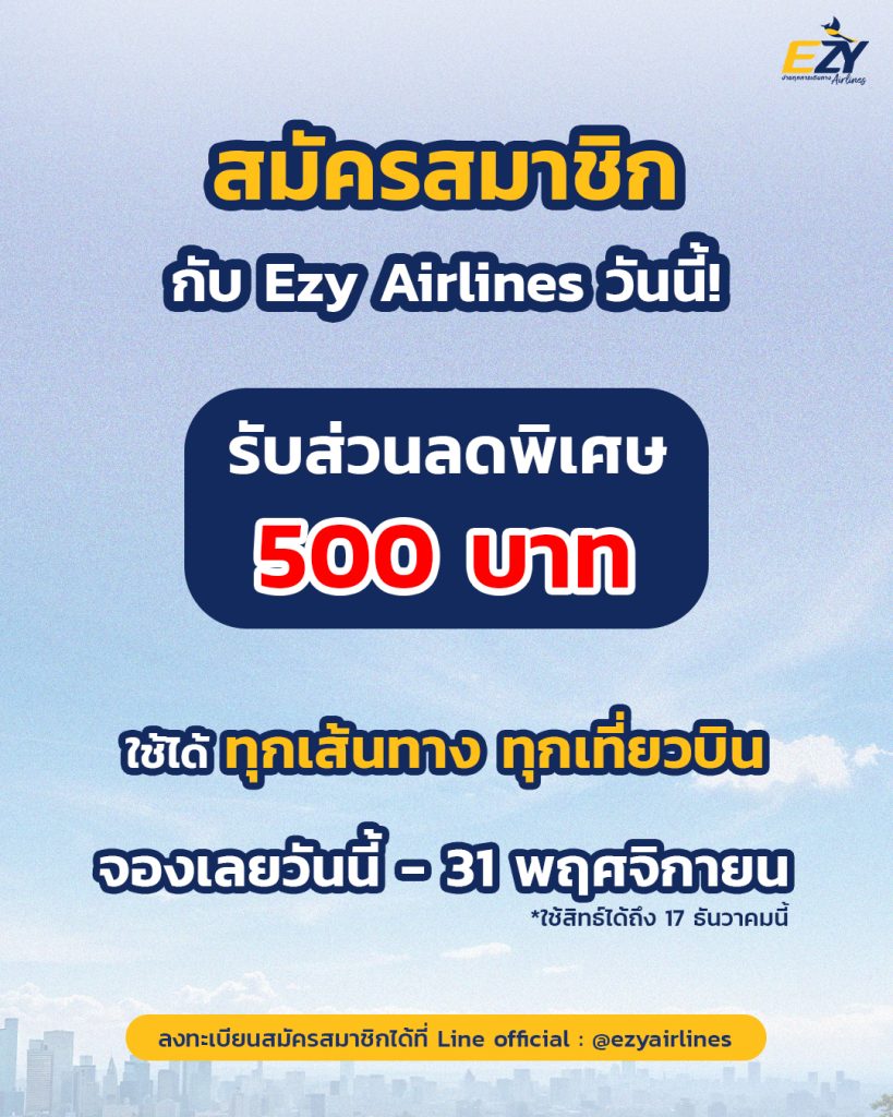 ซึ่งตอนนี้สารบิน พร้อมโปรโมชั่นพิเศษสำหรับเดือนตุลาคม ในราคา 1,900 บาท (ไม่รวมภาษี) จองตั๋วผ่านเว็บไซต์: https//www.ezyairlines.com หรือ LINE Official: @EzyAirines
