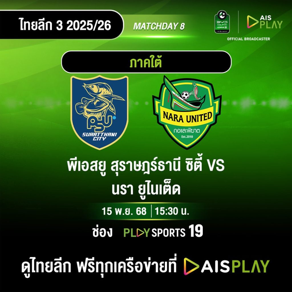 15.30 น. พีเอสยู สุราษฎร์ธานี ซิตี้ พบ นรา ยูไนเต็ด : PLAY SPORTS19