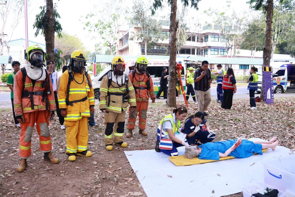 โดยจำลองเหตุการณ์ไฟไหม้บริเวณชั้น 8 อาคารเฉลิมพระเกียรติ 80 พรรษา (วิทยาลัยนานาชาติการท่องเที่ยว/คณะพยาบาลศาสตร์)