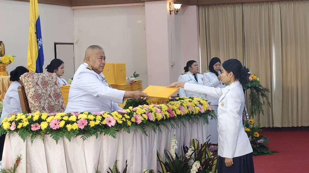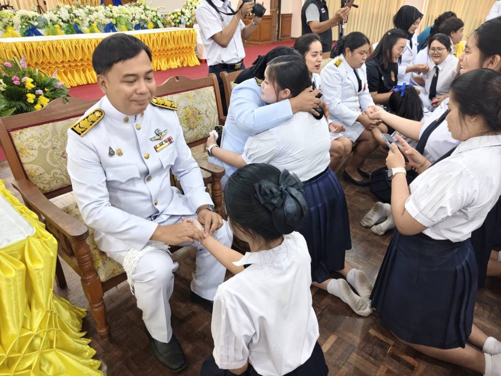 เมื่อวันที่ 19 ก.พ. 69 ณ หอประชุมพระธรามโกศาจารย์ โรงเรียนกาญจนาภิเษกวิทยาลัย อ.ไชยา จ.สุราษฎร์ธานี จัดพิธีมอบประกาศนียบัตร “ราชพฤกษ์ลาช่อ” รุ่นที่ 25 ประจำปีการศึกษา 2568 พร้อมปัจฉิมนิเทศนักเรียนชั้นมัธยมศึกษาปีที่ 6 จำนวน 198 คน โดยมี พลอากาศตรีวิระ เสาวดี ประธานคณะกรรมการสถานศึกษาขั้นพื้นฐาน เป็นประธานในพิธีและมอบประกาศนียบัตรให้แก่นักเรียนพร้อมกล่าวปัจฉิมโอวาทเพื่อเป็นข้อคิดและแนวทางในการปฏิบัติของนักเรียนต่อไป