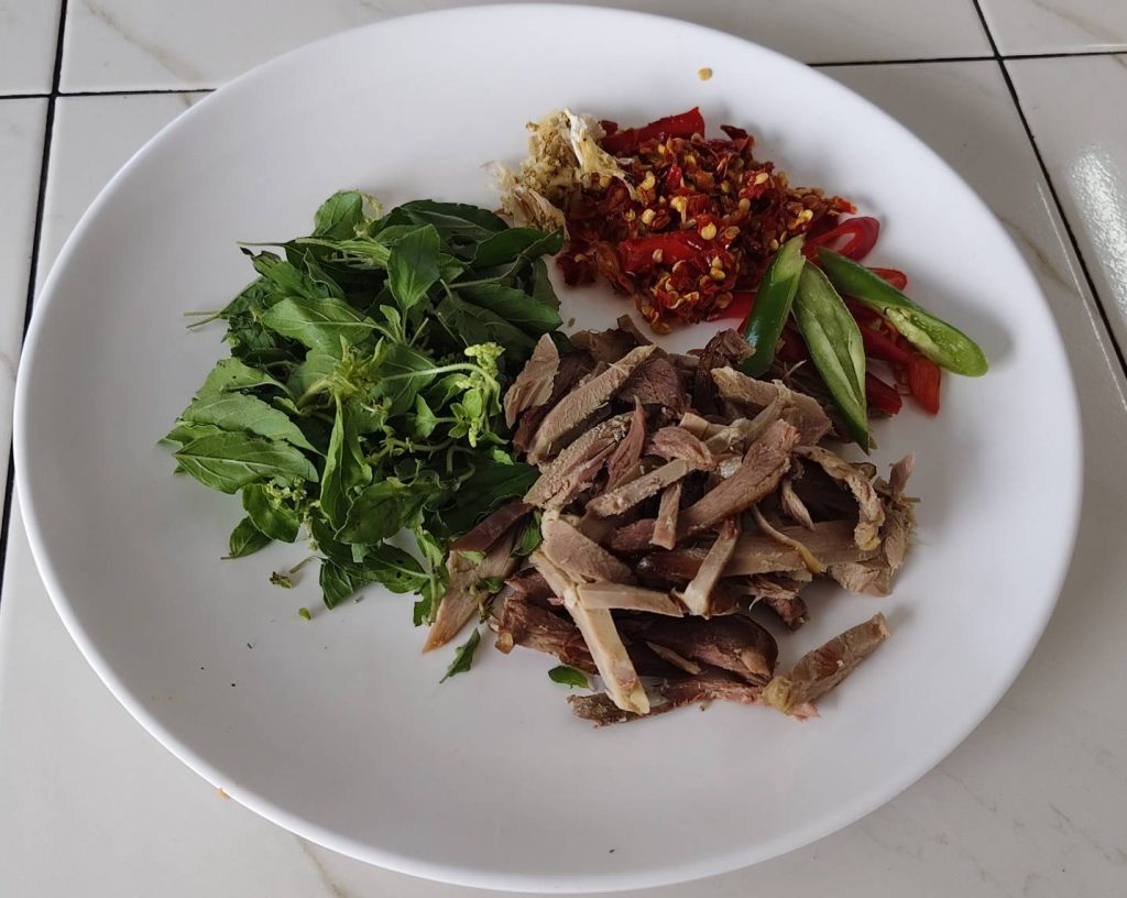 น.ส.ชนัญนัชศ์ สีทอง อายุ 43 ปี หรือน้องอี๊ฟ เจ้าของร้าน เล่าว่า อาหารที่ร้านจะมีทั้งก๋วยเตี๋ยวเป็ดตุ๋น หมูตุ๋น และข้าวกะเพราเป็ดตุ๋น ข้าวคั่วกลิ้งเป็ดซึ่งเป็นเมนูที่คนใต้ชอบรับประทาน และอีกหลายเมนู