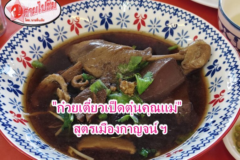 ร้านก๋วยเตี๋ยวตุ๋นคุณแม่ เป็นร้านก๋วยเตี๋ยวเป็ดที่ “นายรื่นเริง” ตามไปชิมแล้วอยากแนะนำ ทั้งความเข้มข้นของน้ำซุปสูตรเมืองกาญจนบุรี เนื้อเป็ดนุ่มไม่เหนียว หนังมันกำลังดี มีกลิ่นหอมของรสเครื่องเทศเข้าเนื้อ เลือดเป็ดมีความเนียนไม่แข็ง